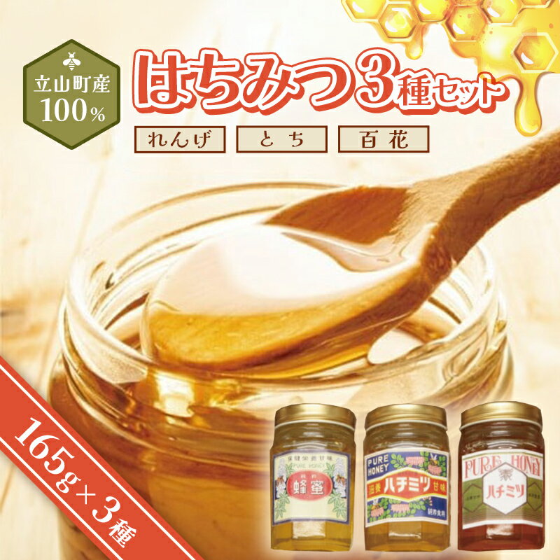 【ふるさと納税】立山町産100% はちみつ3種セット 165g×3本 国産 蜂蜜 はちみつ ハチミツ れんげ とち 百花 食べ比べ 詰合せ セット パン ヨーグルト 料理 F6T-047