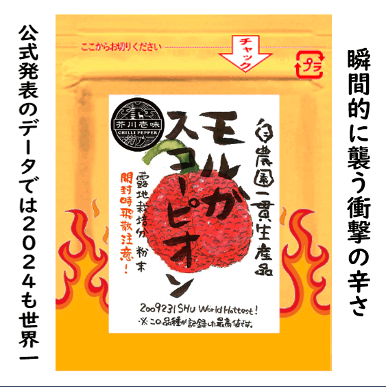 ☆あぶない☆ 辛さの爆発!!! HPLCデータ辛さ世界一・モルガスコーピオン 露地栽培分 一味粉末 10g ☆無農薬&有機肥料使用☆普通・定形外郵便送料無料!!★苗と同時注文は不可です。