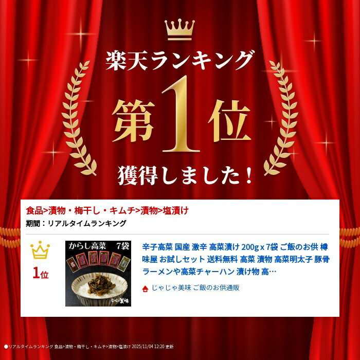 辛子高菜 国産 激辛 高菜漬け 200g x 7袋 ご飯のお供 樽味屋 お試しセット 送料無料 高菜 漬物 高菜明太子 豚骨ラーメンや高菜チャーハン 漬け物 高菜油炒め 明太高菜 業務用 ポイント消化 プチギフト おつまみ グルメ