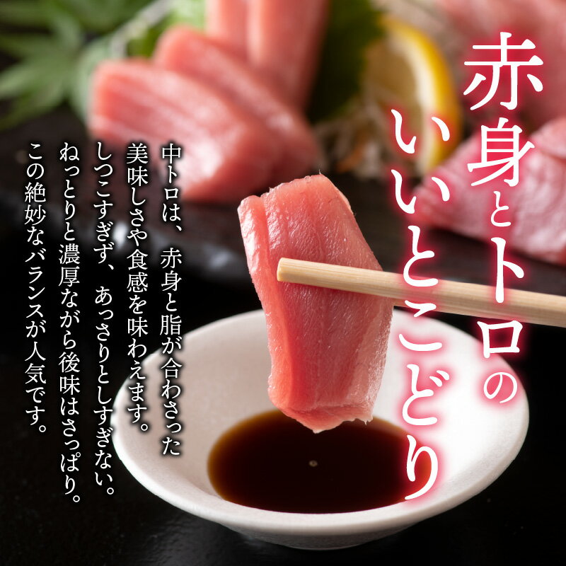 冷凍とは思えない驚きの旨さ。 最新の冷凍技術を採用することで、鮮度抜群の上質なお刺身を自宅でいつでも堪能できます。 本マグロは肉質が非常にまろやかでコクがあり、うま味が強いことが特徴です。 ポイント1:赤身とトロのいいとこどり 中トロは、赤身と脂が合わさった美味しさや食感を味わえます。 しつこすぎず、あっさりとしすぎない。 ねっとりと濃厚でありながら後味はさっぱり。 この絶妙なバランスが人気です。...