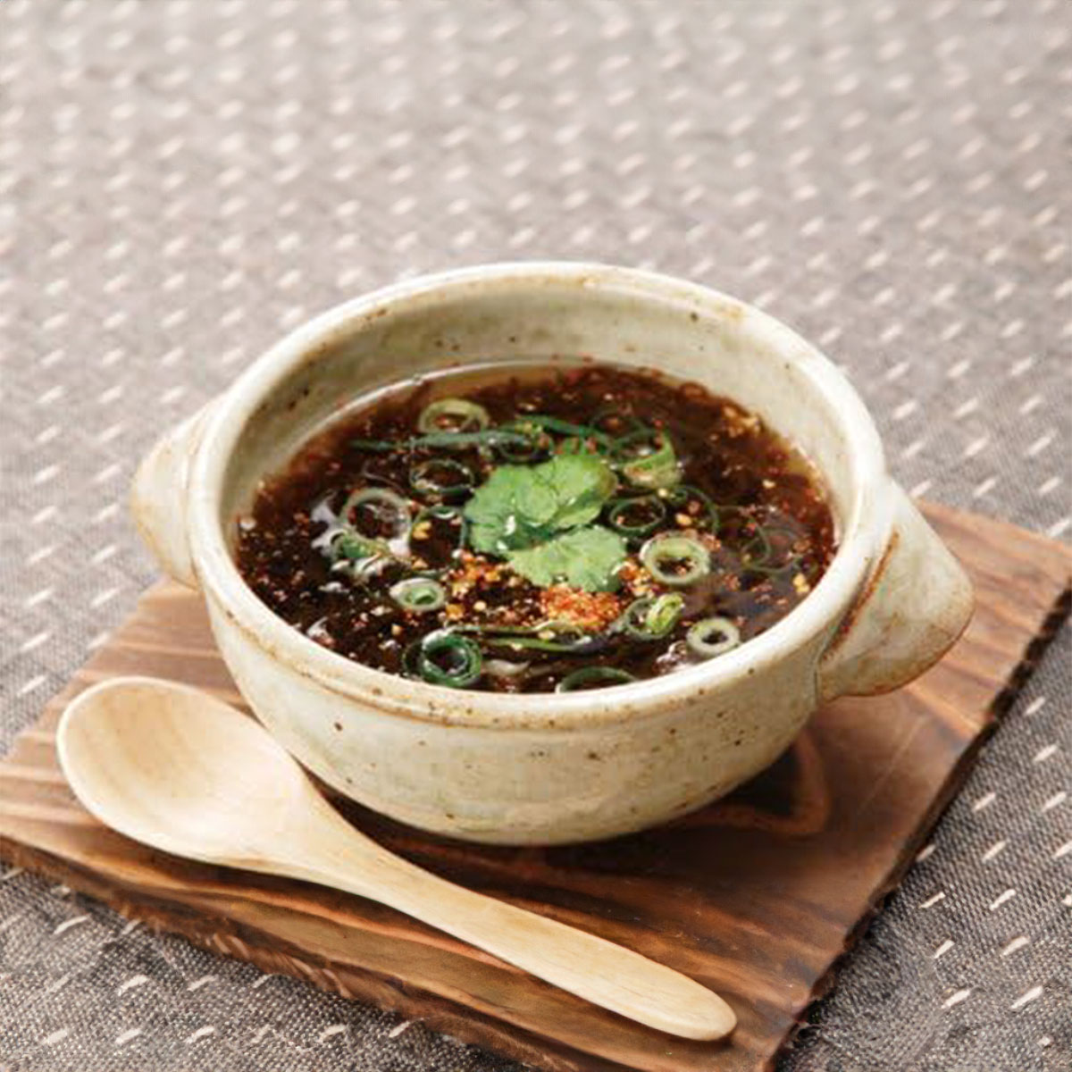 プリプリ食感の来間株もずくと、貝出汁を使用した醤油味のスープで仕上げました。1食19.7Kcalの低カロリーでランチタイムや間食、夜食にもぴったり。ss