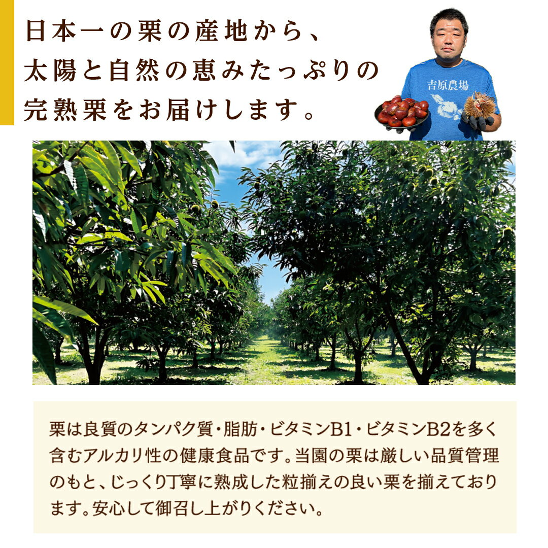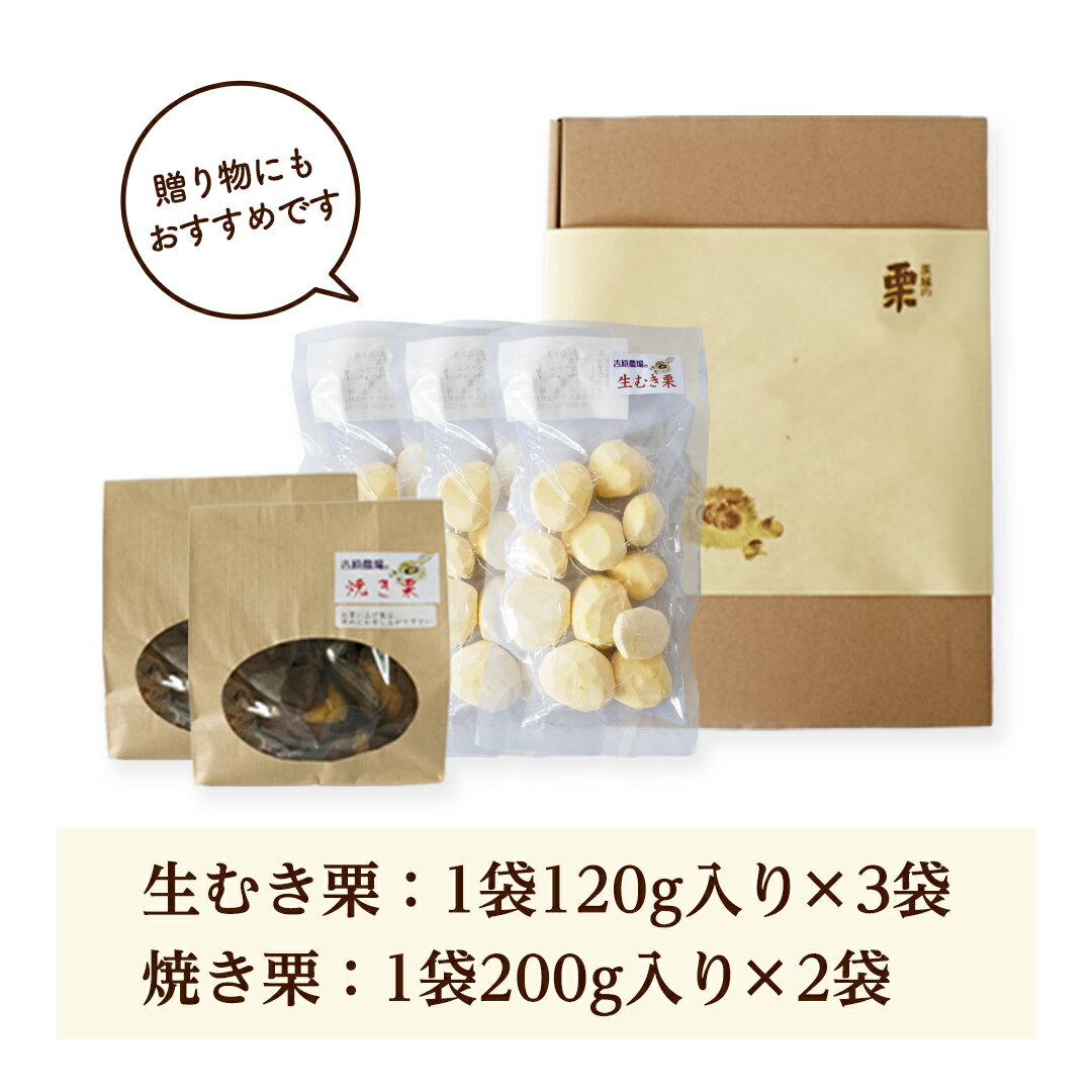 当園の完熟栗をお手軽に楽しんでいただけるセットです。 手間いらずなので秋の味覚のギフトにも最適です。 そのまま食べられる焼き栗と皮むきいらずの生むき栗での栗ごはんがおすすめです。 スタッフみんなで栗拾いや選果、焼き栗の仕込みから、栗の皮むきまで頑張っています。 パンフレット、レシピを同梱いたします。 商品詳細 名称 【 吉原農場 の 完熟栗 】 熟成 生むき栗 3袋 ・ 焼き栗 2袋 セット 内容...