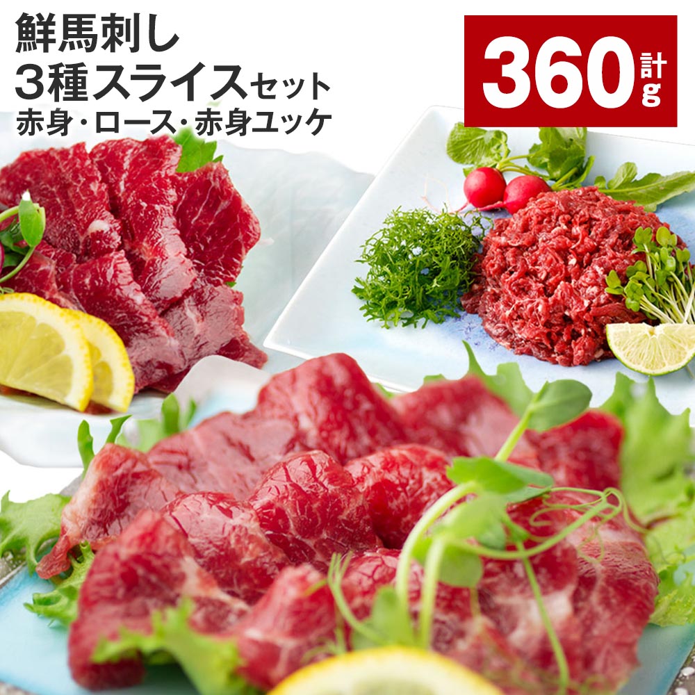 【ふるさと納税】鮮馬刺し 3種スライスセット(赤身・ロース・赤身ユッケ)計360g 馬肉 馬刺し 馬刺 スライス 線切りユッケ 冷凍 パック 真空パック タレ ユッケのたれ 熊本県 高森町 送料無料