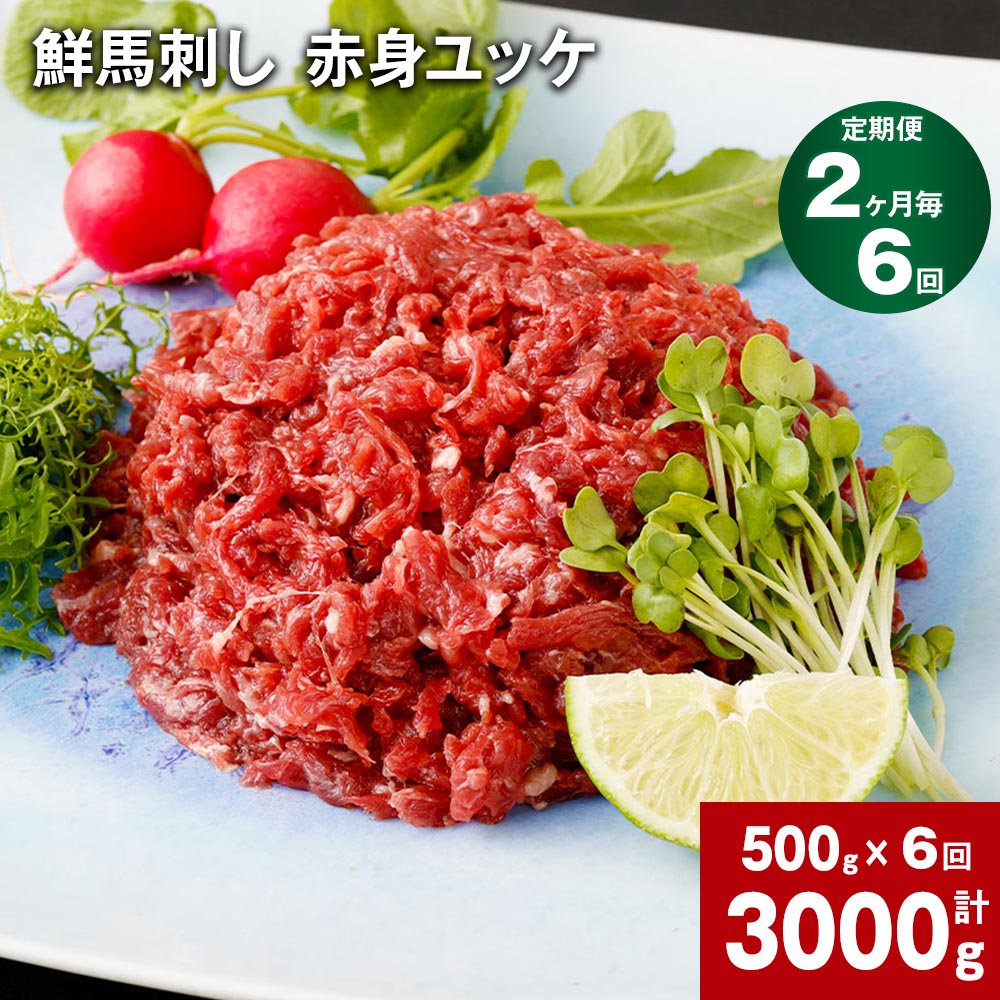 【ふるさと納税】【定期便】【定期便 2ヶ月毎 6回】鮮馬刺し 赤身ユッケ 計3000g 500g(50g x 10パック)×6回 馬ユッケ たれ付き 真空パック 線切り 赤身 馬刺し 冷凍