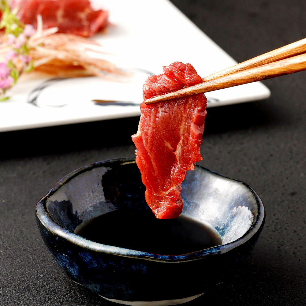 厳選された馬を丹精込めて育てました。是非ご賞味ください。 馬刺しを美味しく食べるためのポイント 【解凍方法】氷水をボール等で作り、商品を未開封のまま約1時間浸すことで半解凍することができます。お急ぎの場合は未開封のまま流水にて半解凍して下さい。半解凍の状態でスライスすると切りやすく、見た目もきれいに仕上がります。 【上手なスライス方法】 肉目(肉の繊維)に垂直になる様にスライスして下さい。平行にし...