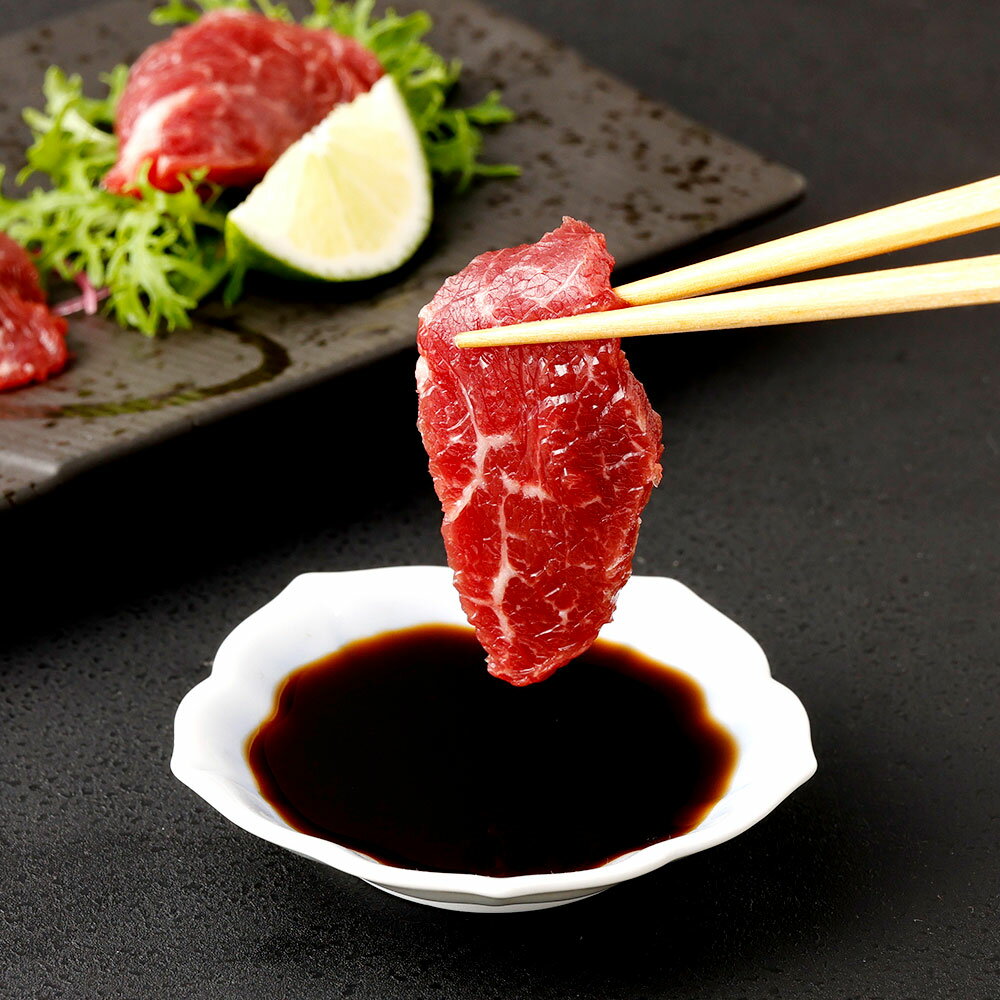 熊本の美味しい赤身の馬刺しをご堪能ください! 歯応え 味わい しっかり 甘み うまみ 豊か お酒 おつまみ 酒の肴 やみつき 脂肪分 少ない やわらかい 肉質 健康志向 送料無料