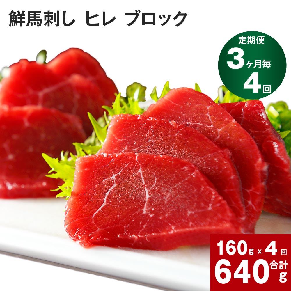 ※返礼品の送付は、熊本県高森町外にお住まいの方に限らせていただきます。 柔らかい部位です。ヒレ馬刺しや、軽く塩コショウをして表面を軽く焼いて馬のブルーレアステーキでお召し上がり頂く他のお肉との旨味の違いがお口に広がります。 商品詳細 商品名 【3ヶ月ごと4回お届け】 鮮馬刺し ヒレ ブロック 内容詳細 ■ 馬肉ヒレブロック160g(約80g×2P) 160g x 1賞味期限: 別途商品ラベルに記載...