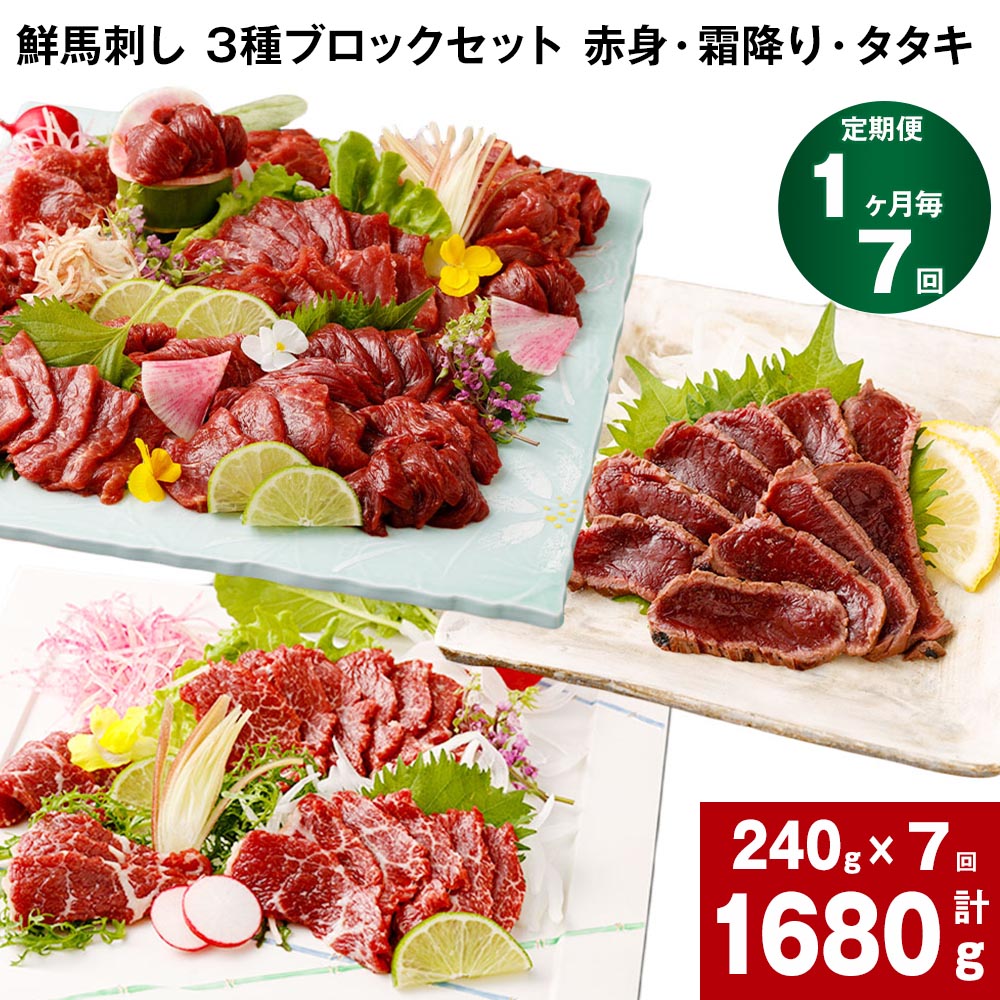 本場熊本の希少な純国産馬肉のみにこだわった当店人気の馬刺し3点セットをお楽しみください。 ご自宅で本格的な馬刺しの美味しさを堪能できる一品です。 そして、美味しさの決め手となるのが、自社独自の馬刺し専用醤油! 残ったタレはお刺身、すき焼き、冷奴…など最後まで余すことなくご利用ください。 ギフトBOXに入れてお届けしますので、贈り物にもぴったりです。 以下の内容をご入金いただいた翌月より毎月1回お届...