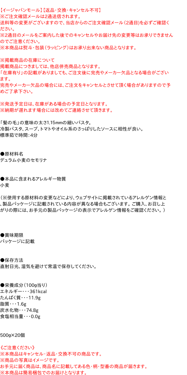 【送料無料】★まとめ買い★ ニップン フェラーラ カッペリーニNO.2 1.15mm 500g ×20個【イージャパンモール】