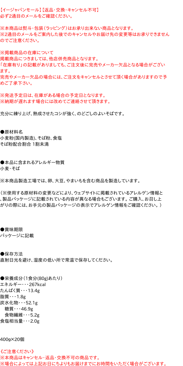 【送料無料】★まとめ買い★ 麺有楽 そば 400g ×20個【イージャパンモール】