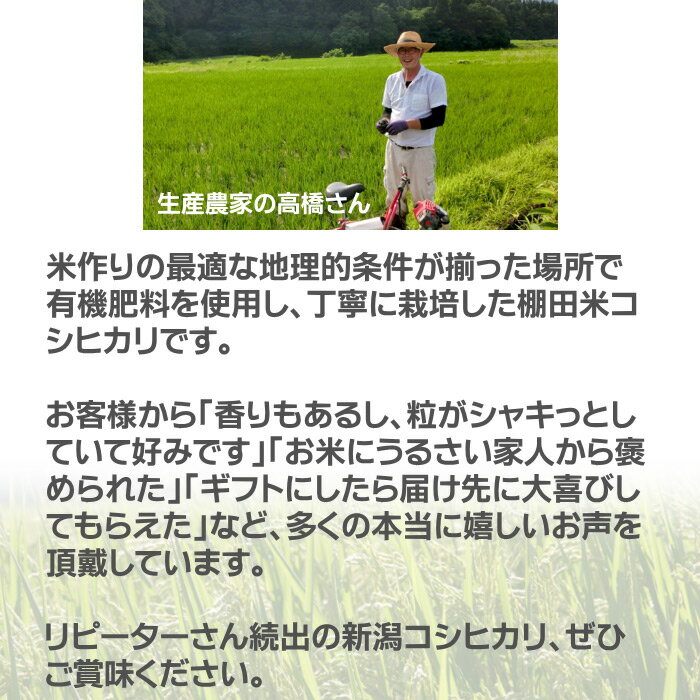 新潟県北部で良質な水と有機肥料で育てた新潟米コシヒカリ