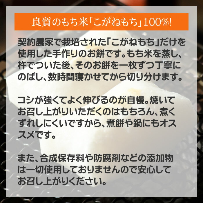 福岡県産もち米100%のお餅です。防腐剤も着色剤も使っていません。