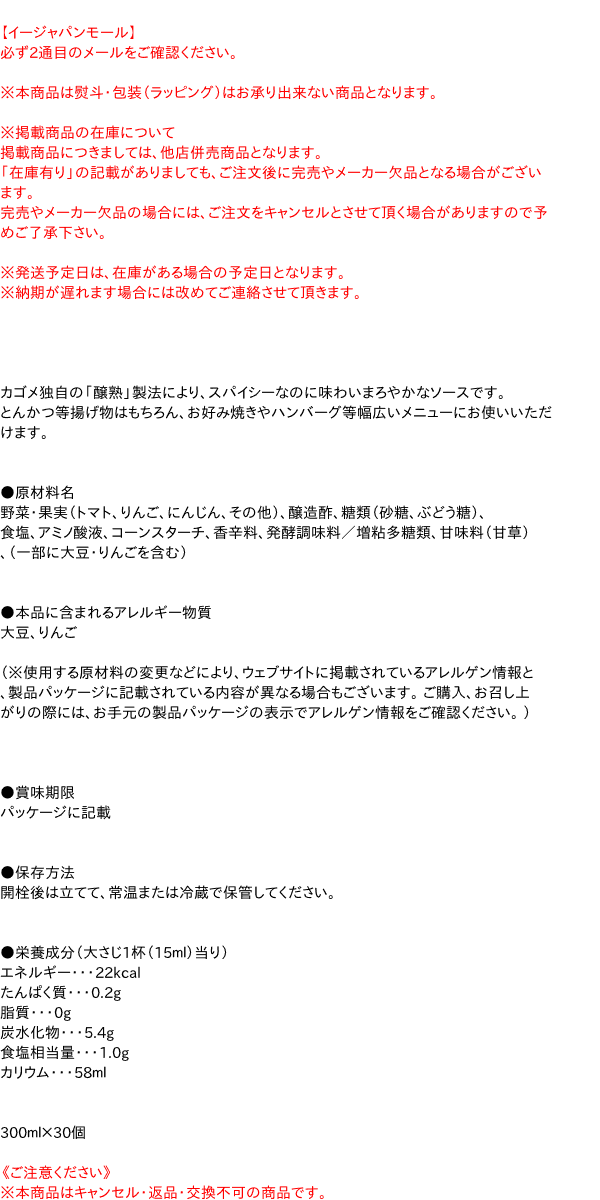 【送料無料】★まとめ買い★ カゴメ 醸熟ソース とんかつ 300ML ×30個【イージャパンモール】
