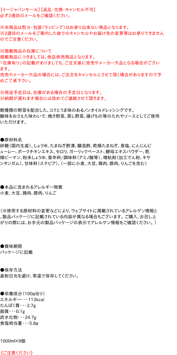 【送料無料】★まとめ買い★ QP ノンオイルドレッシング こくみ和風野菜1L ×9個【イージャパンモール】