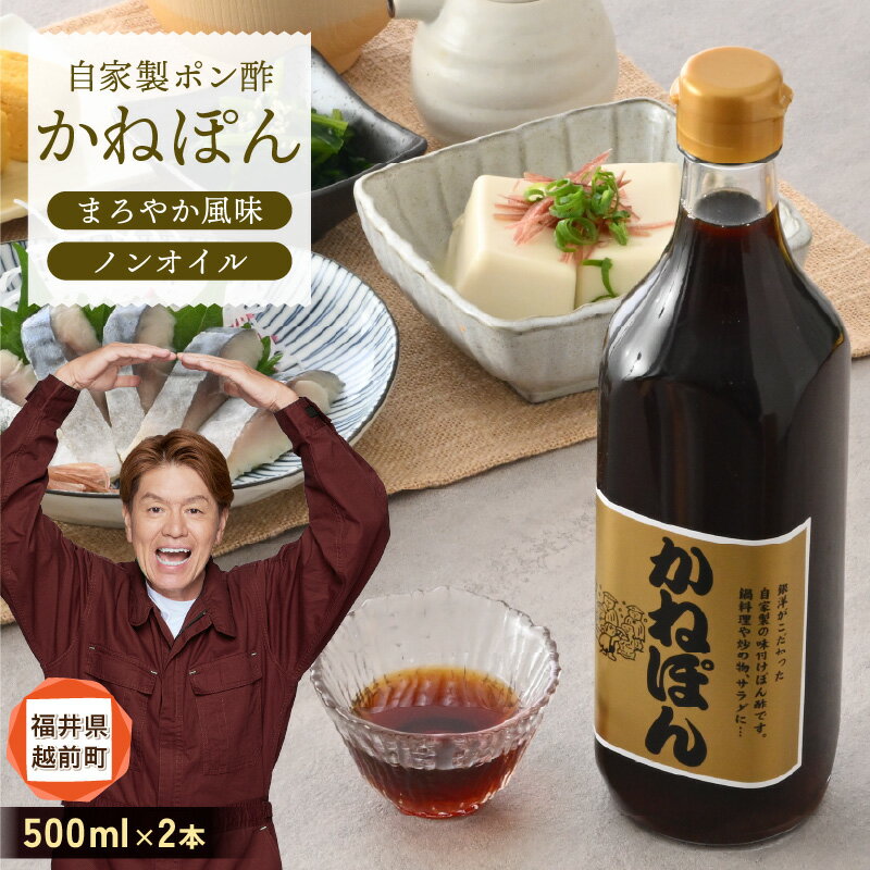 【ふるさと納税】「万能」特選ぽん酢 昆布だし かねぽん 2本セット ノンオイル【調味料 ポン酢 鍋 グルメ 人気 お取り寄せ 常備アイテム 福井県 aj】 [e52-a002]