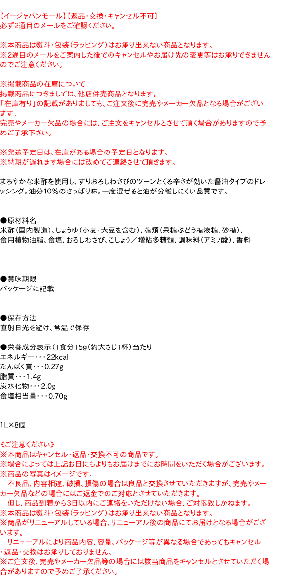 【送料無料】★まとめ買い★ ミツカン 香味和ドレわさび醤油仕立て 1L ×8個【イージャパンモール】