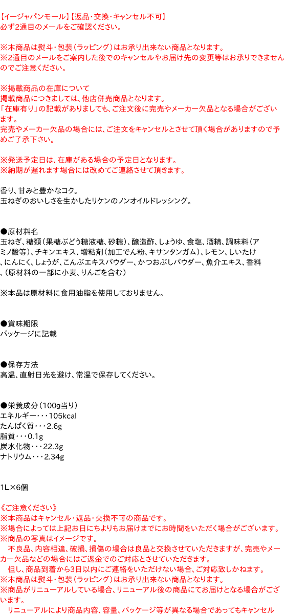 【送料無料】★まとめ買い★ 理研 ノンオイル和風玉ねぎドレ 1L ×6個【イージャパンモール】