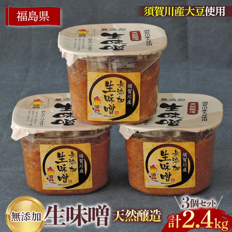 【ふるさと納税】須賀川市ブランド米コシヒカリ「ぼたん姫」を米麹に使用した天然醸造・無添加生味噌(800g×3個) F7X-0200
