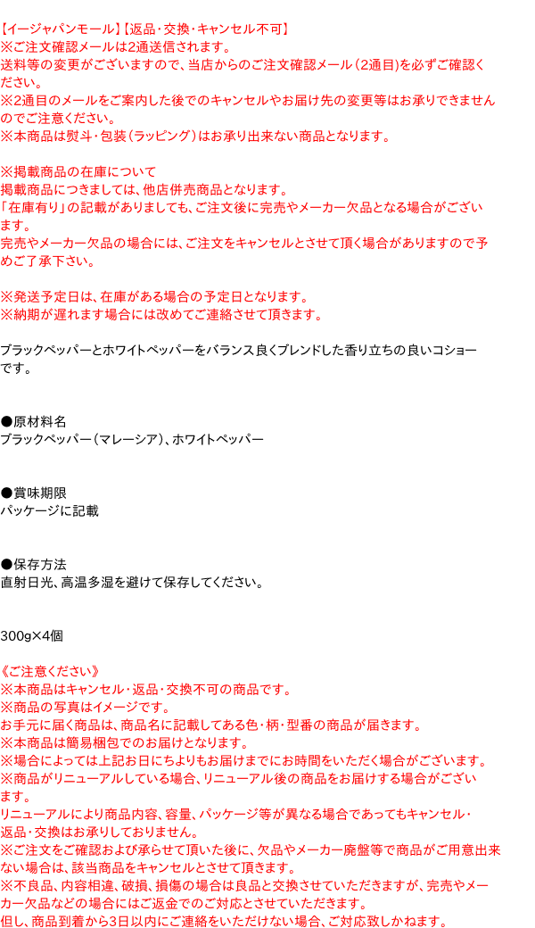 ブラックペッパーとホワイトペッパーをバランス良くブレンドした香り立ちの良いコショーです。●原材料名ブラックペッパー(マレーシア)、...